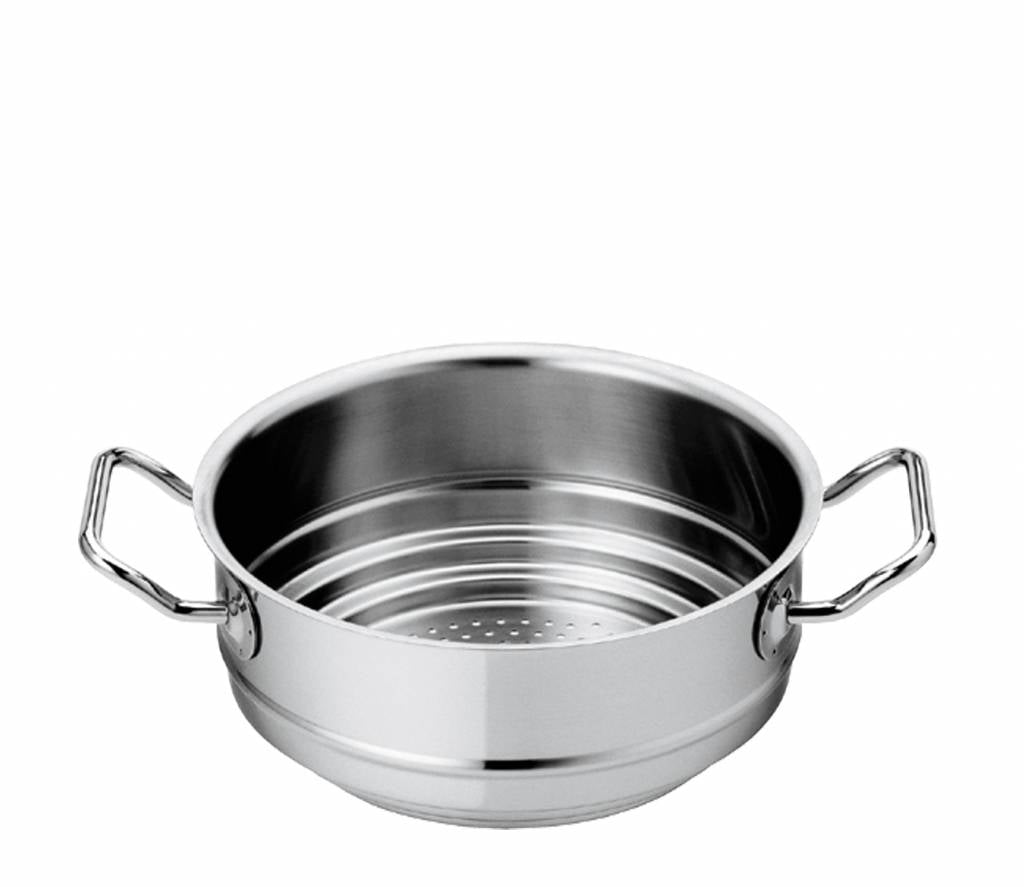 Met deze Stoominzet van de Brigade Premium serie van Spring maakt u gemakkelijk een stoompan van uw kookpan. Met de stoominzet stoomt u gemakkelijk pasta, rijst, aardappelen of groentes. Deze stoominzet is geschikt voor de kookpannen van de Brigade Premium serie van Spring met een doorsnede van 16, 18 of 20 cm. Wanneer u een deksel wil gebruiken op de stoominzet is alleen een deksel van 20 cm geschikt. De pan is geschikt voor de warmtebronnen: gas, elektrisch, keramisch, oven en inductie.