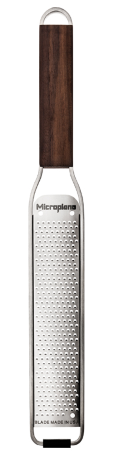 Deze zester rasp van Microplane is ideaal voor het raspen van verschillende producten. Ultrascherpe en goedgeplaatste tanden maken het raspen van citroenschil, parmezaanse kaas en andere harde kazen tot een snelle klus. De rasp maakt deel uit van de Master serie. Deze serie raspen bevat uitzonderlijk mooie, geoliede walnoothandvatten en liggen comfortabel in de hand. De antislip voet zorgt voor extra stabiliteit bij het raspen op aanrechten en borden. De rasp wordt geleverd met een beschermhoes. Door het houten handvat kan de rasp niet in de vaatwasmachine, maar is gemakkelijk schoon te maken met afwasmiddel en warmwater.
