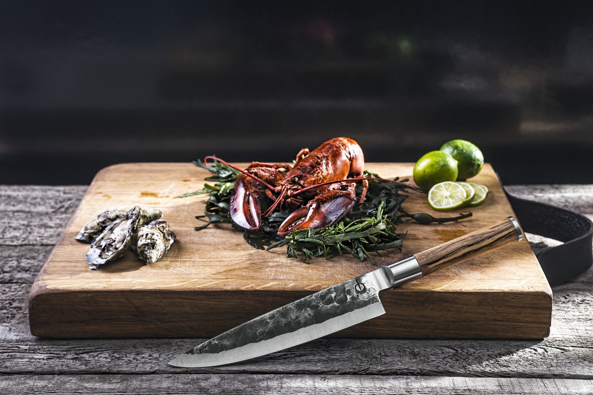 Het koksmes van de Olive serie van Forged is met de hand gesmeed in vijf lagen en heeft een uitgesproken en robuust uiterlijk. Het koksmes is ideaal voor allerlei soorten snijwerk in de keuken. Het lemmet heeft een dikte van 2 mm en het heft is gemaakt van prachtig olijfhouten. De lemmetlengte van het mes bedraagt 20.5 cm. Het mes is vervaardigt uit Japans staal en heeft een hardheid van 58 Rockwell. Was het mes na gebruik met de hand af.