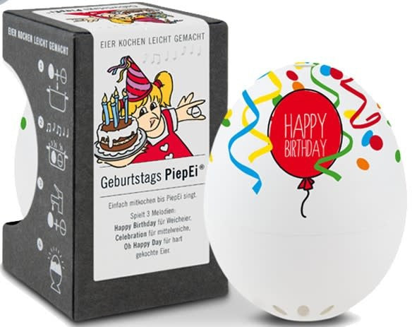 Met deze eierwekker mislukt het koken van eieren nooit meer! Het PiepEi geeft drie verschillende melodietjes bij een zacht gekookt ei, een medium gekookt ei en hard gekookt ei. Het is belangrijk om de eieren op dezelfde temperatuur te bewaren als de "echte" eieren. Bewaar je de eieren in de koelkast? Dan het piepei ook. Bewaar je de eieren buiten de koelkast? Dan het piepei ook. Zodat het piepei altijd op dezelfde temperatuur is. Wanneer je de eieren gaat koken gaat het piepei mee in de pan. Wanneer je een zacht gekookt ei wil haal je het ei eruit bij het eerste melodietje. Wanneer je een medium gekookt ei wil haal je het ei eruit bij het tweede melodietje. Wanneer je een hard gekookt ei wil haal je het ei eruit bij het laatste melodietje. Het birthday piepei heeft de volgende melodieën: