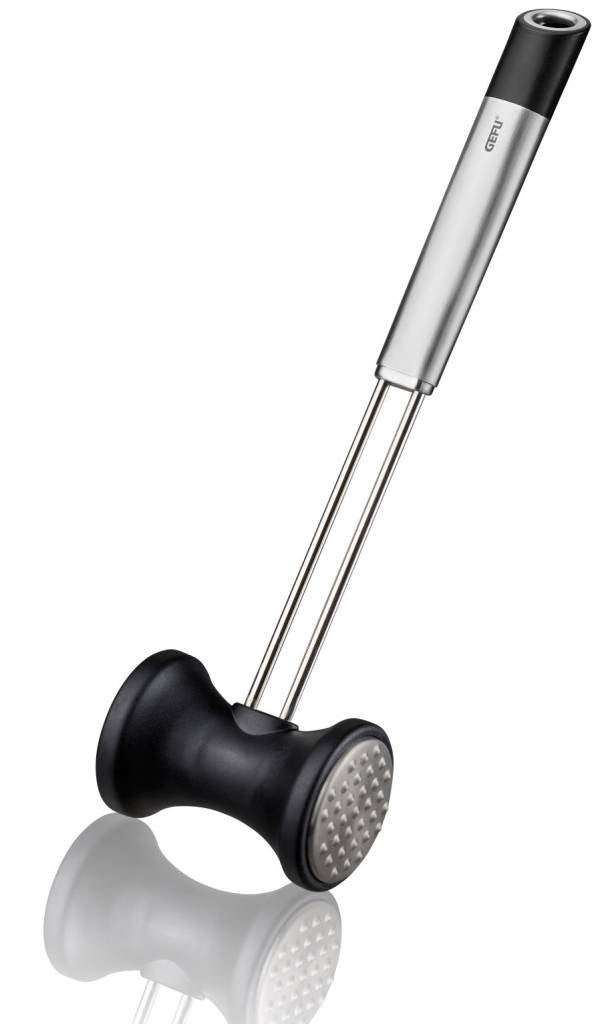 Wil je jouw stukje vlees malser maken? Dat kan! De GEFU vleeshamer uit de Primeline serie is dan misschien iets voor jou! De vleeshamer heeft een gladde kant en een kant met puntjes. Mede door de ergonomische handgreep ligt de vleeshamer goed in je hand. De vleeshamer is gemaakt van roestvrijstaal en heeft een lengte van 26.9 cm. Daarnaast is de vleeshamer vaatwasmachine bestendig.