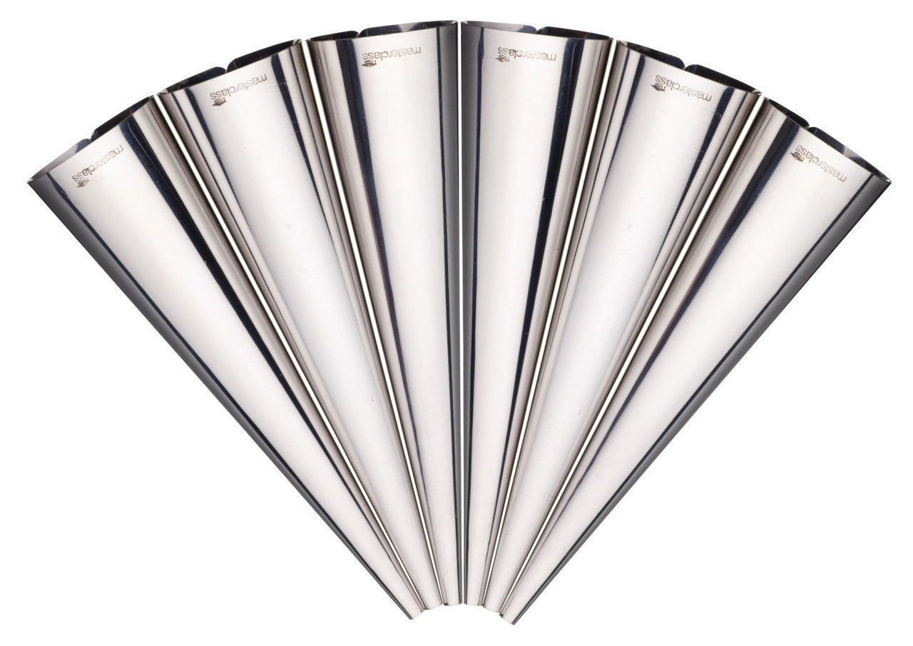 Elke hoornvormige vorm is gemaakt van sterk roestvrij staal voor maximale sterkte en duurzaamheid. Om te beginnen vet je gewoon de vormen in en wikkel je bladerdeeg rond elke vorm voordat je ze in de oven plaatst om te bakken. Eenmaal gebakken kunt u de vormpjes gemakkelijk verwijderen, zodat u perfect gevormde hoorntjes overhoudt - klaar om te worden gevuld met room, vla, jam of fruit. Elke vorm is 17 cm lang en 3,5 cm breed - Vaatwasserbestendig.