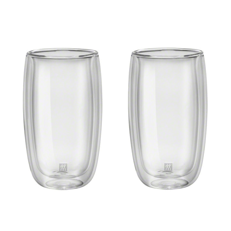 Set met twee dubbelwandige Latte Macchiato glazen van Zwilling. De glazen zijn met de hand gemaakt van borosilicaatglas. De glazen voelen licht aan en hebben een robuuste uitstraling. De glazen houden warme dranken langer warm en koude dranken langer koel. De glazen zijn vaatwasmachinebestendig en worden met twee geleverd.