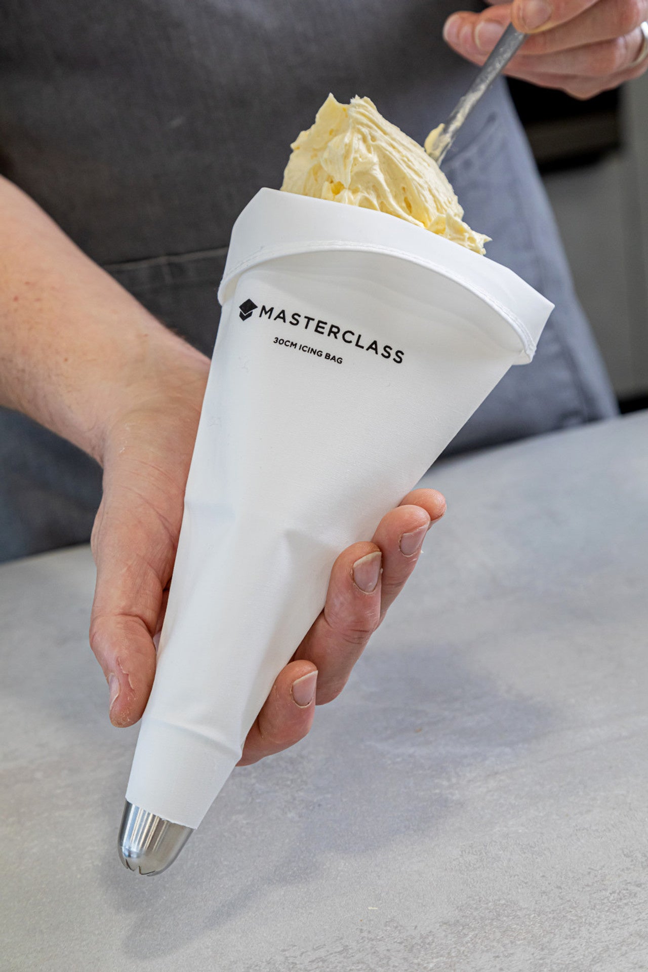 Of u nu gebakken creaties glazuurt of aardappelpuree op een zelfgemaakte taart spuit, met de herbruikbare spuitzak van MasterClass van 30 cm ziet het er fantastisch uit. De binnenvoering zorgt ervoor dat de inhoud soepel en gelijkmatig stroomt voor de beste resultaten. De spuitzak is gemaakt van 100% katoen en heeft een wasbare binnenvoering, zodat u hem steeds opnieuw kunt gebruiken.