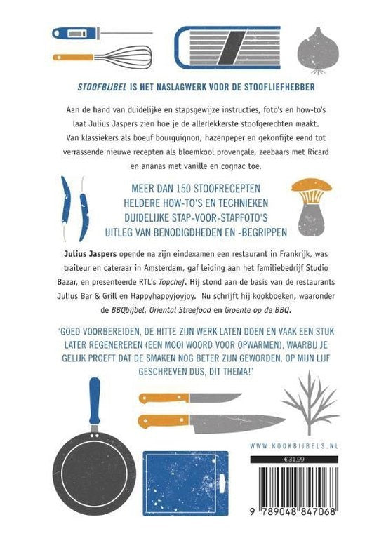 Aan de hand van duidelijke, stapsgewijze instructies, foto's en how-to's laat Julius Jaspers zien hoe je de allerlekkerste stoofgerechten maakt. Van klassiekers als boeuf bourguignon, hazenpeper en gekonfijte eend tot verrassende nieuwe recepten als bloemkool provençale, zeebaars met Ricard en ananas met vanille en cognac toe.