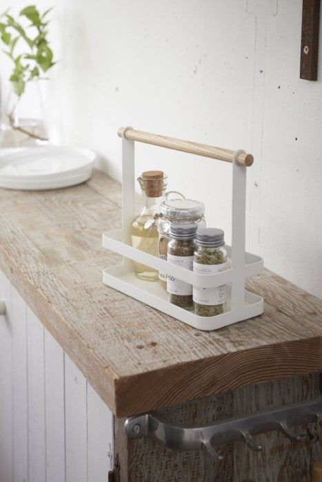 Het tosca kruidenrek is een prachtig strak design voor op het aanrecht. Het is een handige houder om verschillende kruidenpotjes en oliën in te bewaren. Het kruidenrek is gemaakt van staal en hout.