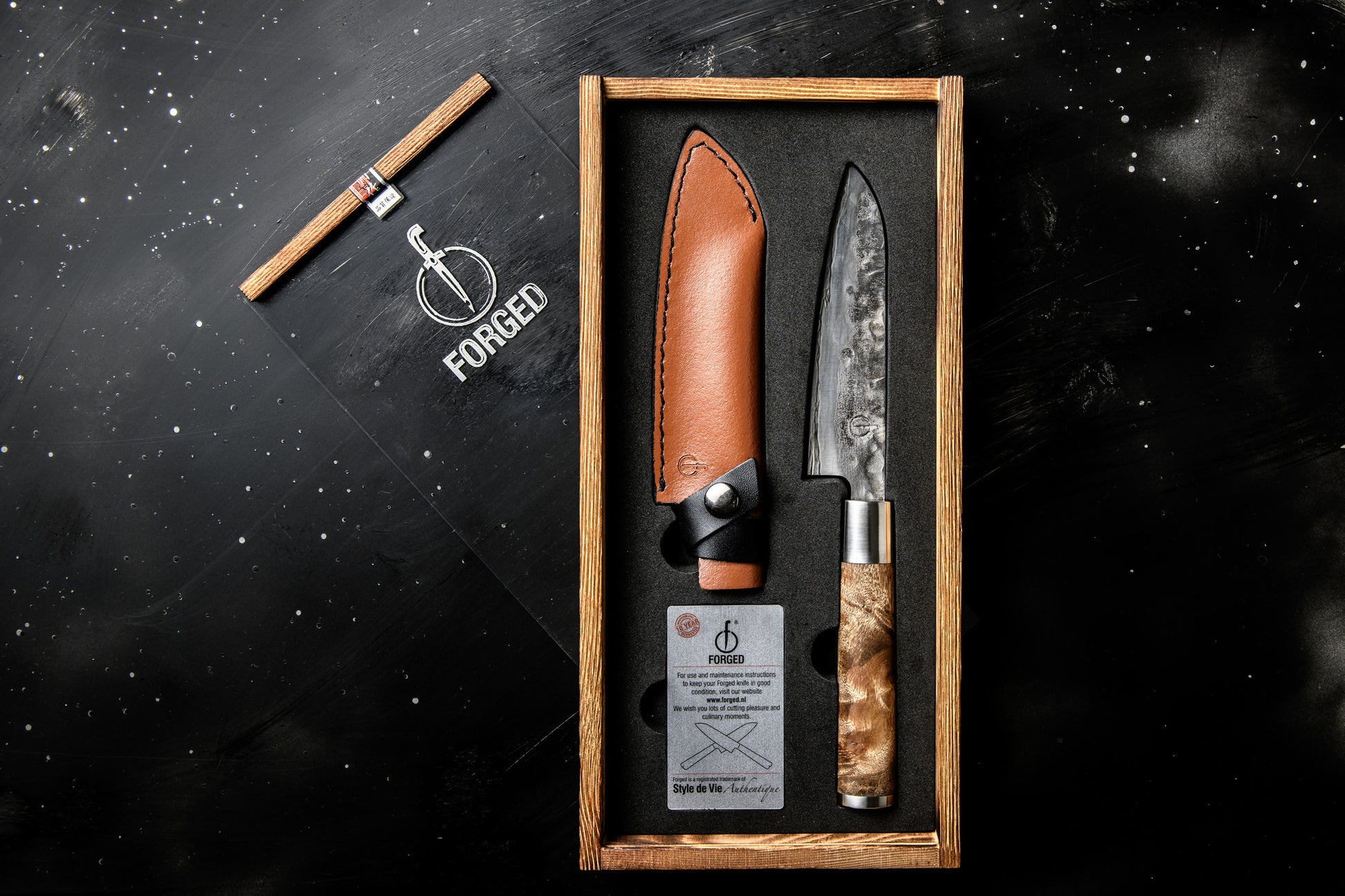 Forged is een modern messenmerk. De messen uit de verschillende collecties hebben allen een stoere en unieke uitstraling. De messen worden gemaakt van Japans staal en hebben een hardheid van 58-60 Rockwell.